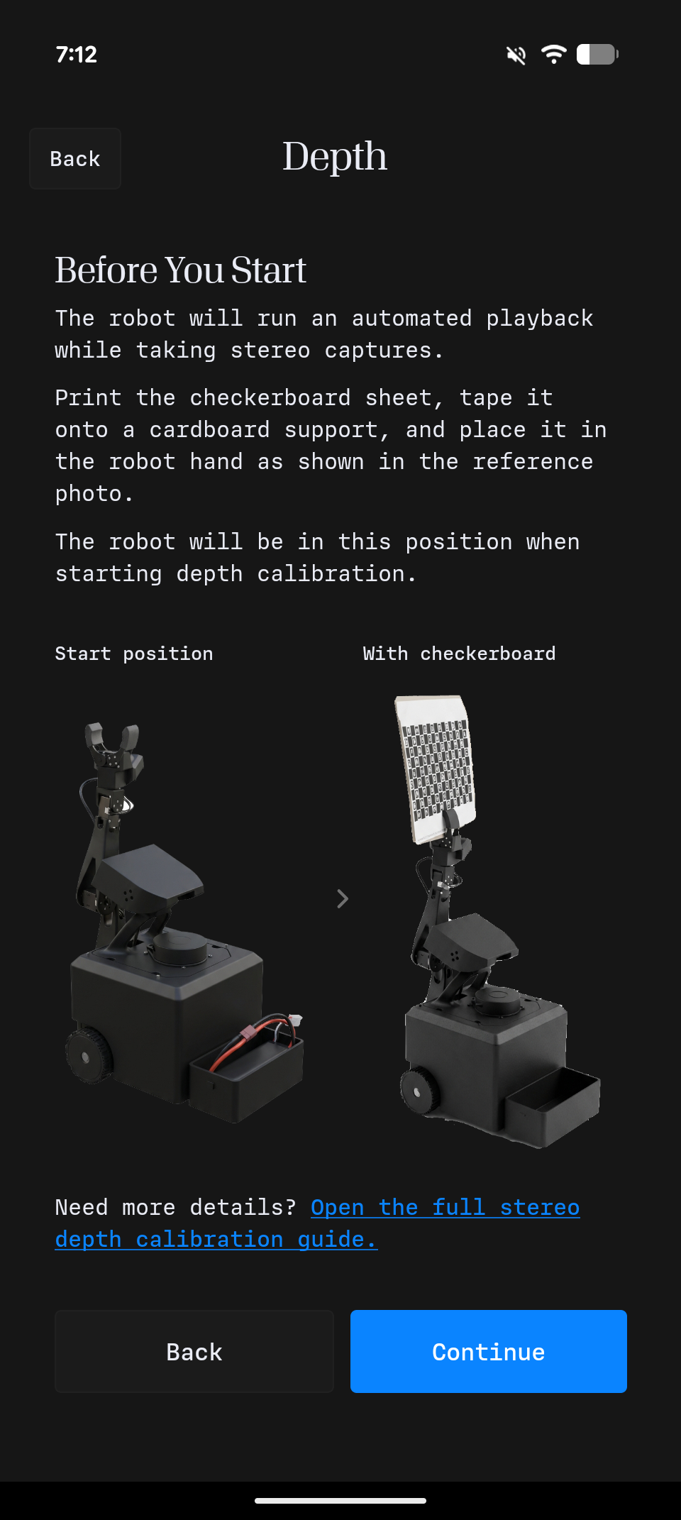 Go to Configuration -> Depth and tap Start calibration