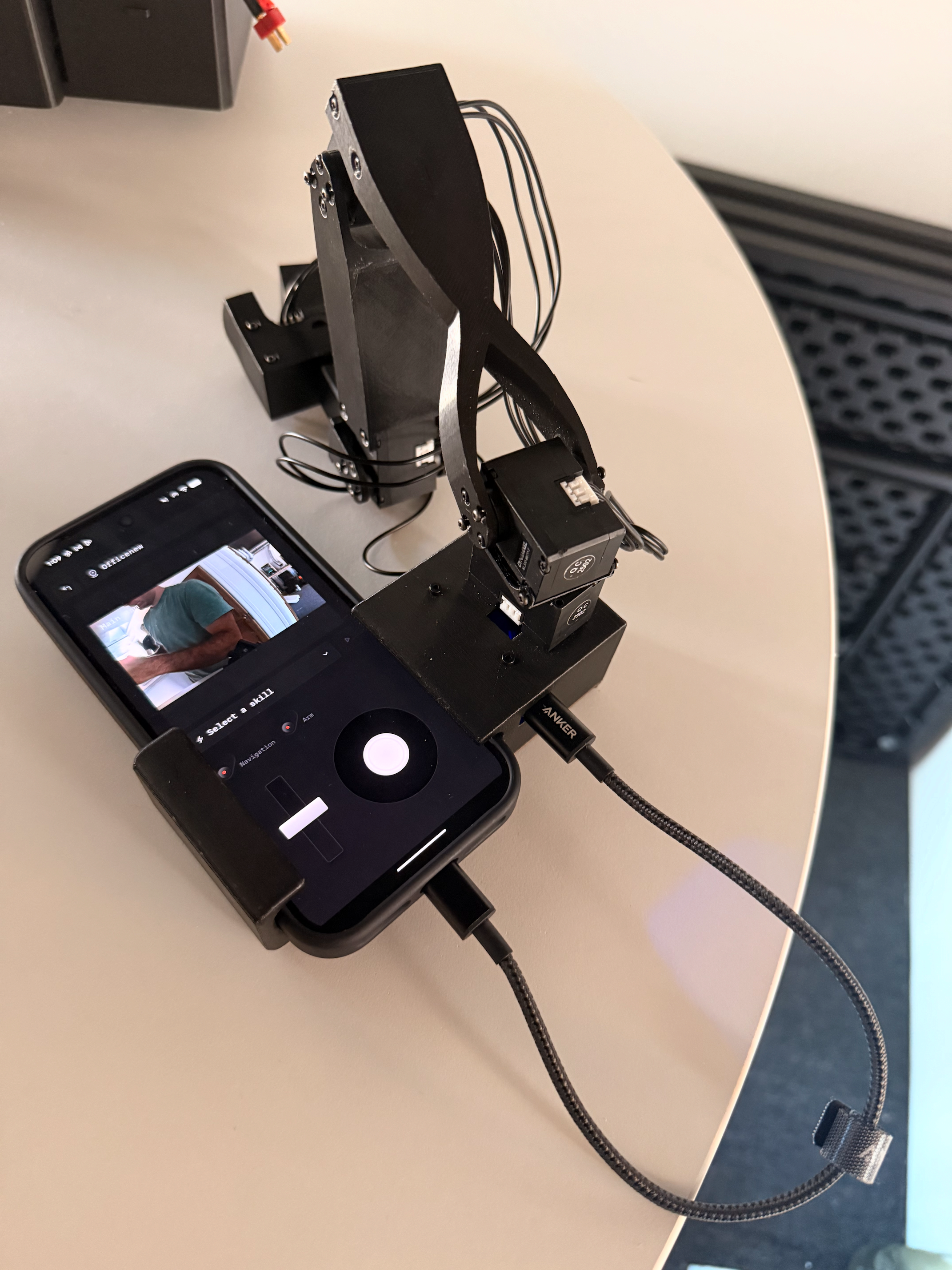 MARS (and all Innate robots) are controllable via the Innate app: Every MARS robot comes with a leader arm attachable to your phone: